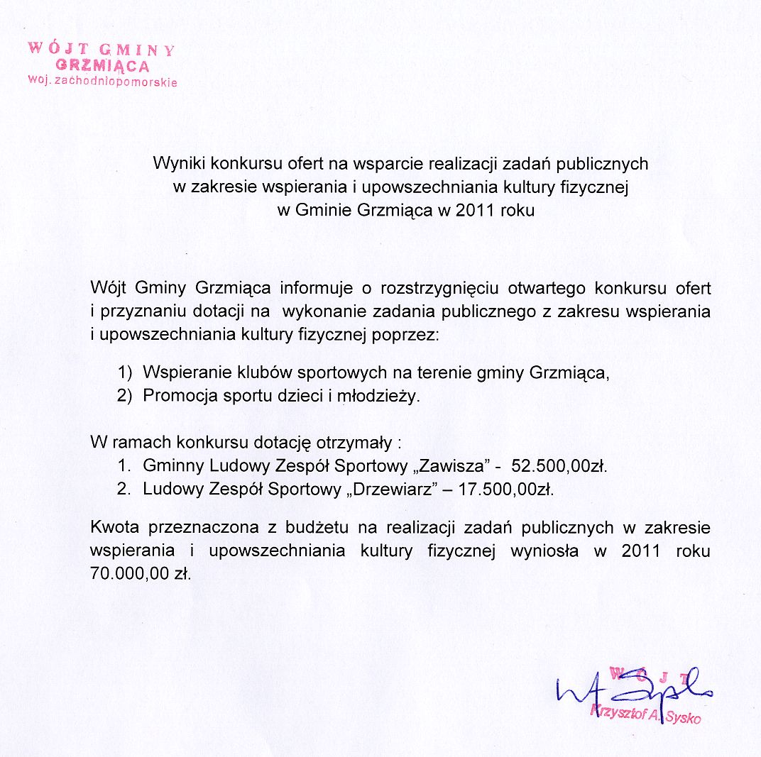 Wyniki otwartego konkursu ofert na wsparcie realizacji zadań publicznych w 2011 roku
